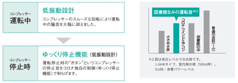 低振動設計だから、室内はずっと快適です。