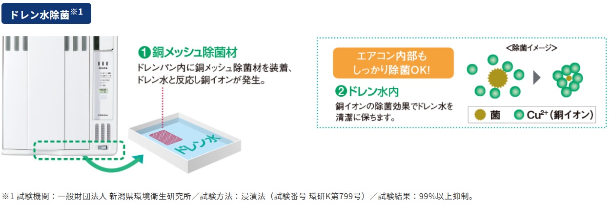 ドレン水内の細菌の繁殖を抑えます。