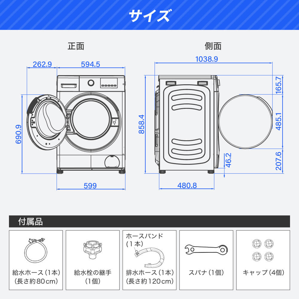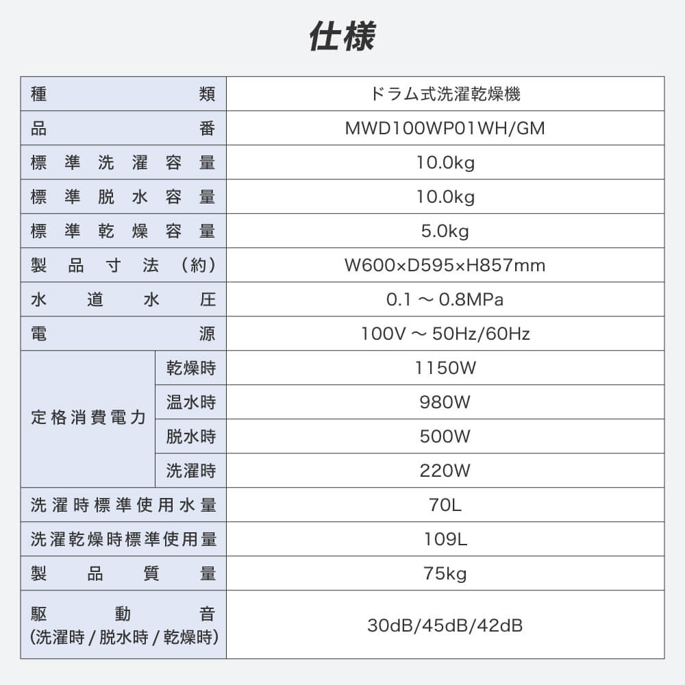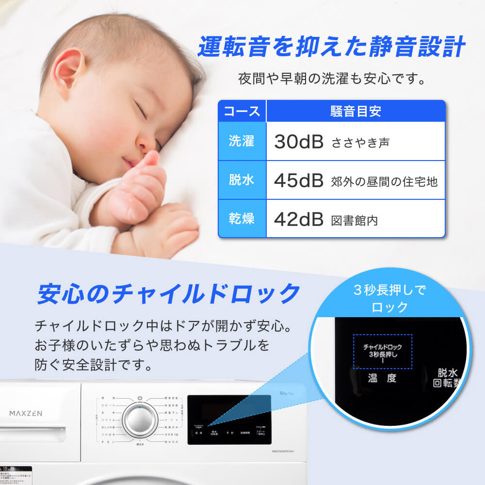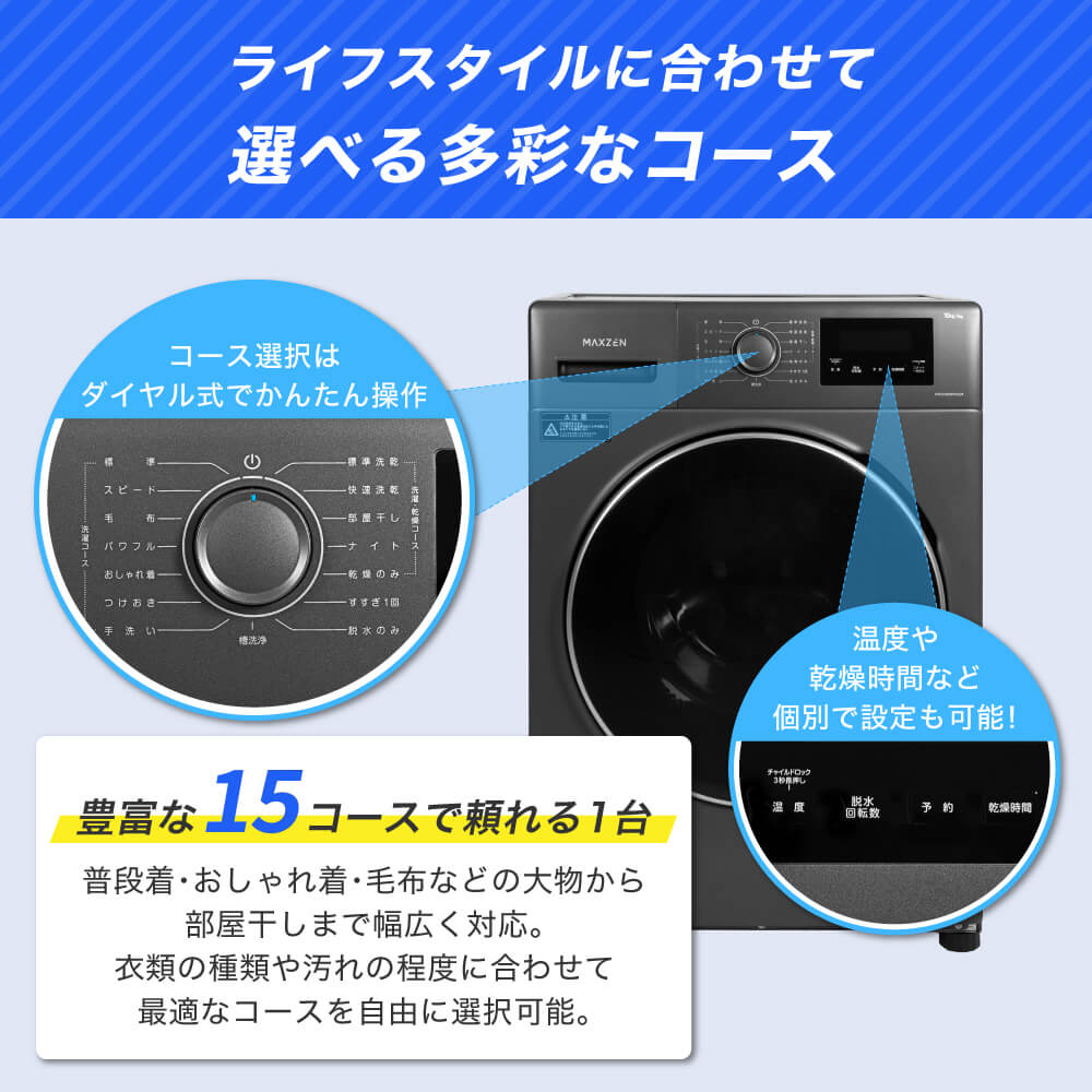 MAXZEN ドラム式洗濯乾燥機10kg 横幅わずか60cmのコンパクトサイズ MWD100WP01WH